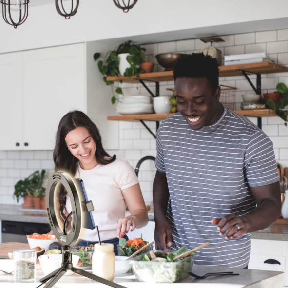 Transformă orice spațiu într-un adevărat studio cu Selfie Ring, trepiedul cu inel luminos ideal pentru filmări video și selfie-uri! Echipat cu un inel LED cu trei moduri de iluminare controlate prin telecomandă, acest dispozitiv oferă flexibilitate maximă datorită suportului său reglabil și rotativ, garantând cadre perfecte de fiecare dată.